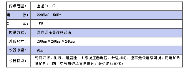 儀器符合GB/T3536;GB/T267;ASTMD92標(biāo)準(zhǔn),適用于測定石油產(chǎn)品的閃點(diǎn)和燃點(diǎn),但不適用于測定燃料油的開口閃點(diǎn)低于79℃石油產(chǎn)品。儀器采用固態(tài)調(diào)壓器,用調(diào)節(jié)旋鈕調(diào)節(jié)電爐電壓從而實(shí)現(xiàn)按標(biāo)準(zhǔn)要求的升溫速度。