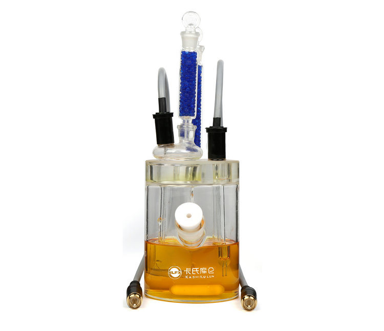 電解池:用于測(cè)定樣品中的水分,由陰極室(電解電極)干燥管、電解電極、陰極室(電解電極內(nèi)腔)、攪拌子、陽極室(電解池瓶)干燥管、測(cè)量電極、進(jìn)樣旋塞、陽極室(電解池瓶)組成。